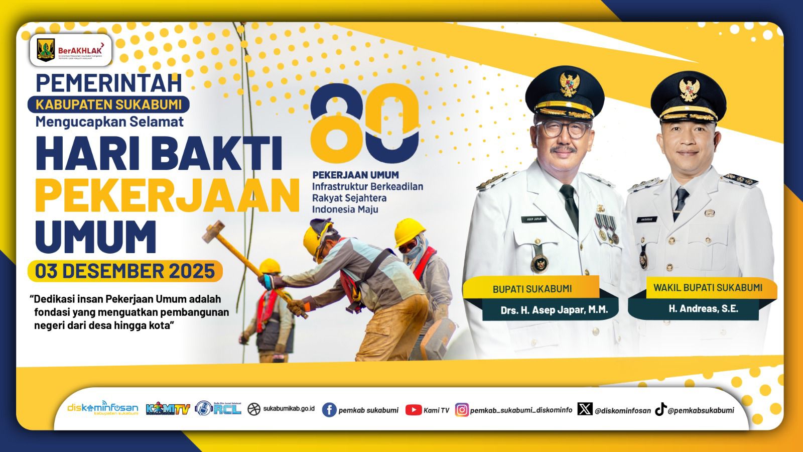 Pemerintah Kabupaten Sukabumi Mengucapkan Selamat Hari Bakti Pekerjaan Umum 03 Desember 2025admin03/12/2025News, Sukabumi25864 Views Post Views: 25,864 Don't MissDiskominfo Kabupaten Sukabumi Gelar FGD Penyusunan Arsitektur dan Peta Rencana Pemerintah Digital Tahun 2025Perumdam TJM Cabang Cicurug Lakukan Pemeliharaan Rutin untuk Menjaga Stabilitas Layanan Air BersihPemkab Sukabumi Ikuti Penilaian P2WKSS Tingkat Provinsi Jawa Barat Tahun 2025 Secara VirtualUPTD PU Wilayah III Cicurug Tegaskan Pentingnya Drainase dalam Pemeliharaan JalanDinas PU Kabupaten Sukabumi Optimalkan Perbaikan Jalan dengan Metode Hotmix Sepanjang 2025Dinas PU Kabupaten Sukabumi Gelar Pelatihan dan Sertifikasi P3A Tahun 2025