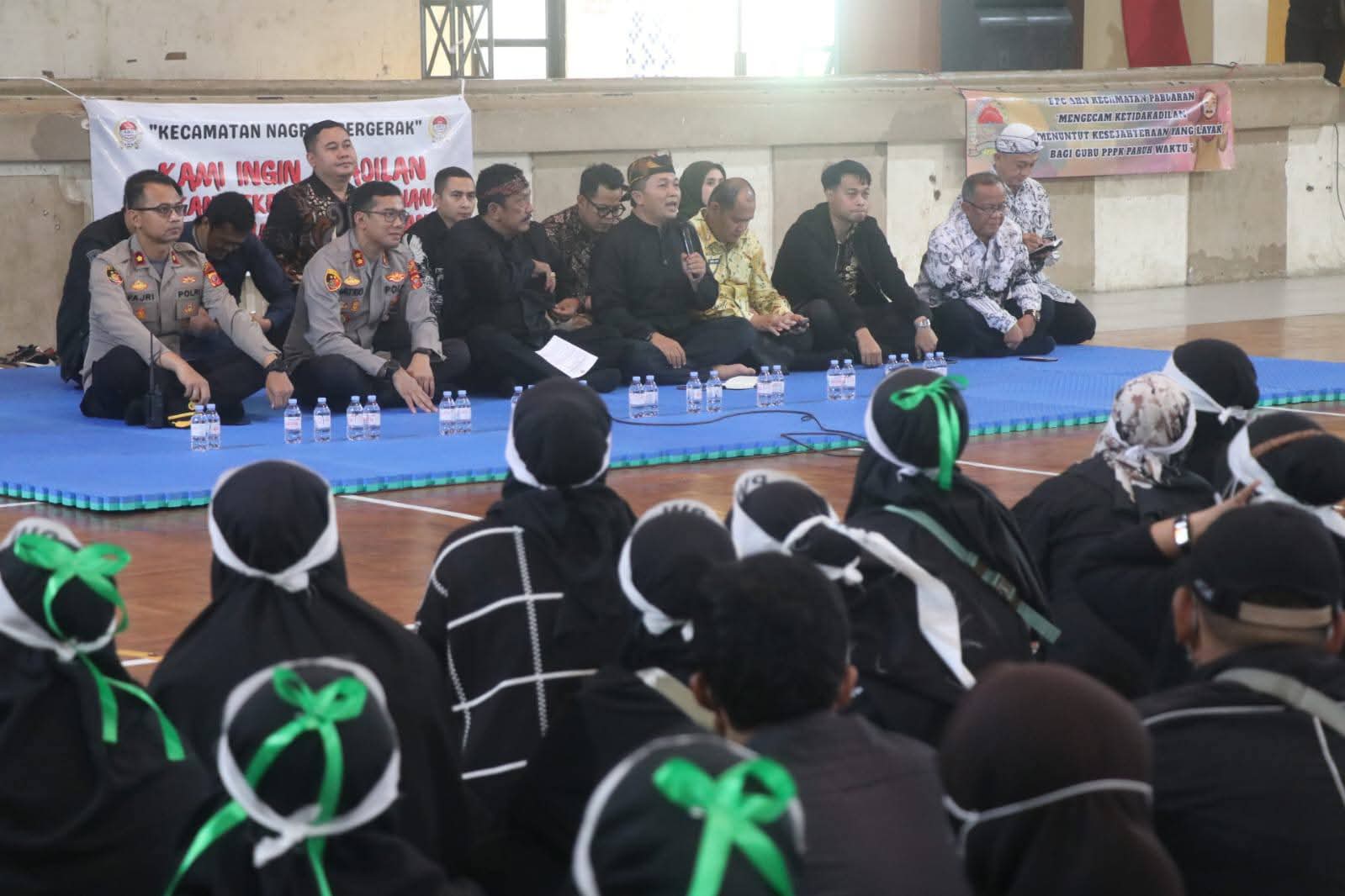 Para guru PPPK PW menyampaikan sejumlah tuntutan mulai dari kenaikan gaji, perubahan status dari paruh waktu menjadi penuh waktu, hingga jaminan kepesertaan BPJS Kesehatan. Aspirasi tersebut disampaikan secara terbuka dan diterima dengan baik oleh Bupati Sukabumi.