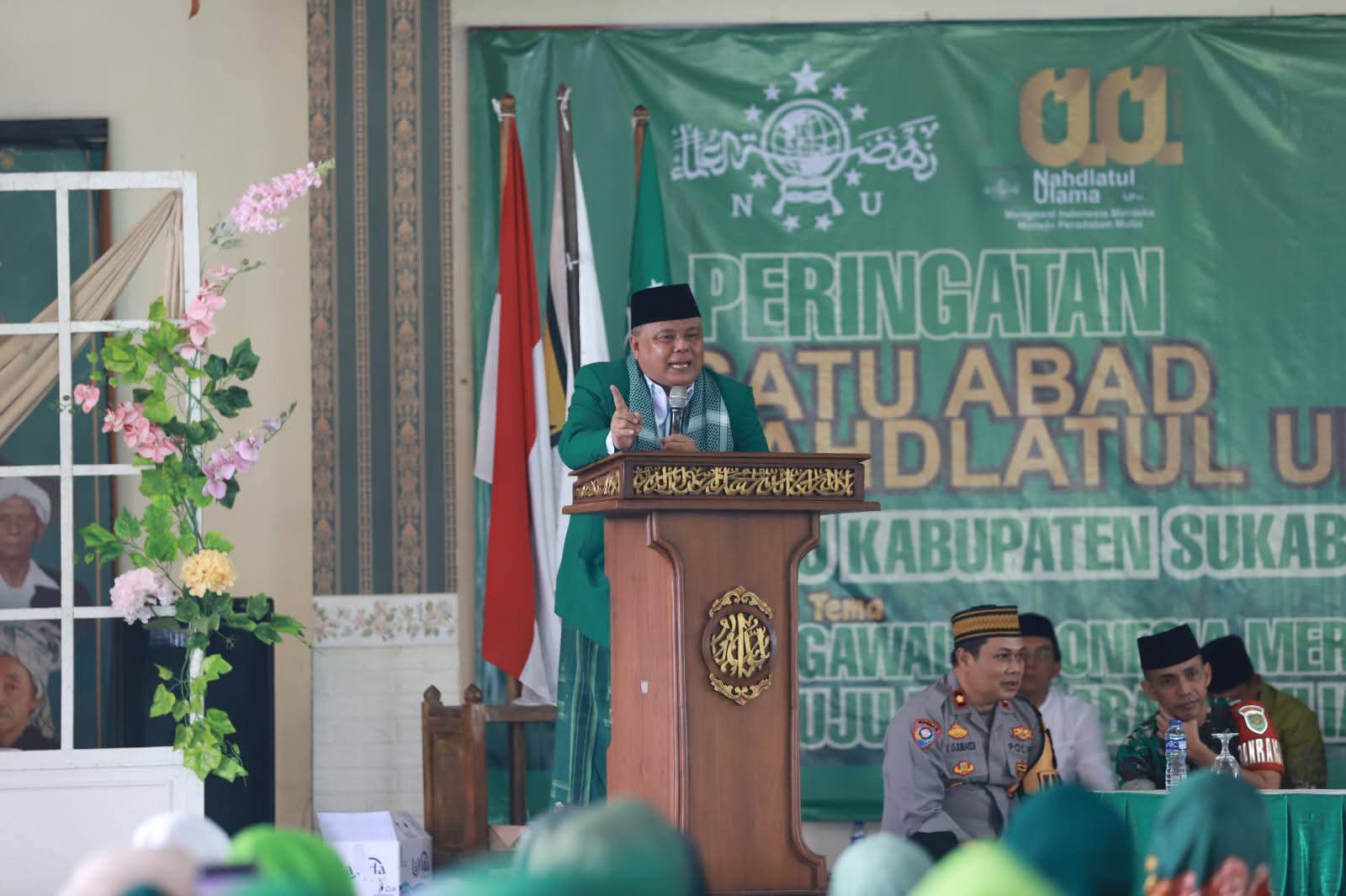 “NU akan terus bersinergi dengan pemerintah serta mengawal dan mendukung visi Kabupaten Sukabumi,” ujarnya dalam peringatan satu abad Nahdlatul Ulama yang dihadiri pula Bupati Sukabumi H. Asep Japar beserta Wakil Bupati Sukabumi H. Andreas di Sekretariat PCNU Kabupaten Sukabumi, Sabtu, 31 Januari 2026.