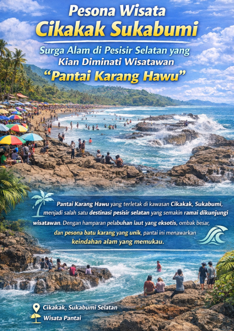 tigasrikandi.com – Sukabumi, Kawasan Kecamatan Cikakak, Kabupaten Sukabumi, semakin dikenal sebagai salah satu daerah dengan potensi wisata alam yang memikat di wilayah selatan. Beragam destinasi wisata yang menawarkan panorama pantai, perbukitan, hingga wisata budaya menjadikan kawasan ini banyak dikunjungi wisatawan, terutama saat musim liburan.
