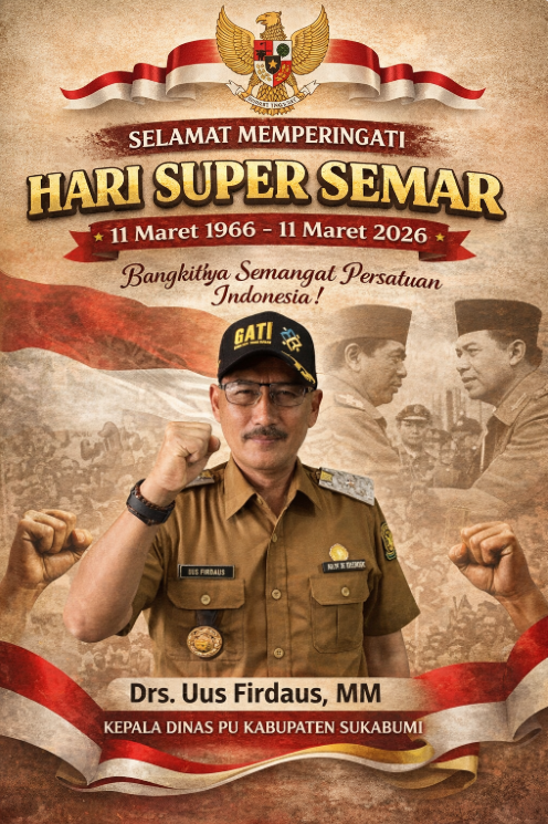 Dinas PU Kabupaten Sukabumi Mengucapkan Selamat Memperingati Hari Super Semar 2026admin09/03/2026Sukabumi1324 Views Post Views: 1,324 Don't MissPerumda AM TJM Perkuat Infrastruktur Air Bersih, Bangun TPT di Barujagung NagrakPERUMDA AM TJM Kabupaten Sukabumi Mengucapkan Selamat Memperingati Hari Super Semar 2026Bupati Asep Japar Minta Para Camat Siaga Pastikan Pelayanan Optimal Jelang Hari Raya Idul FitriRakor Lintas Sektor Oprasi Ketupat Lodaya 2026 Wabup Minta Semua Lini SiagaPenutupan Bazar Kullinary Ramadhan, “Wabup Signifikan Mendorong Geliat Ekonomi UMKM”Wabup Dampingi WAMENDIKDASMEN Tinjau Program Unggulan SDN 01 Dan Pembelajaran Modern Di SRMP 7