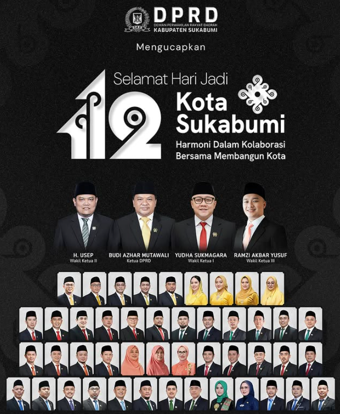 DPRD Kabupaten Sukabumi Mengucapkan Selamat Hari Jadi Kota Sukabumi ke-112admin01/04/202607/04/2026Sukabumi24561 Views Post Views: 24,561 Don't MissDampingi DANREM 061/ Surya Kencana Resmikan Jembatan Garuda, Bupati ” Infrastruktur Adalah Program prioritas”Puncak Peringatan HPN , Wabup Minta Fers Terus Mengawal Proses Pembangunan Di SukabumiResmikan SEKBER Sagaranten, Bupati ” Jaga Kerukunan, Jadikan Tempat Sosial Dan Kemaslahatan Umat”Bupati Minta Seluruh Pasilitas Kesehatan Mengoptimalkan Layanan Terbaik Untuk MasyarakatBuka MUSCAB III BPC HIPMI , Bupati “HIPMI Penggerak Inovasi Pertumbuhan Ekonomi Di Sukabumi”Ketua DPRD Kabupaten Sukabumi Terima Audiensi Aliansi Pemuda, Aspirasi Reses Jadi Sorotan
