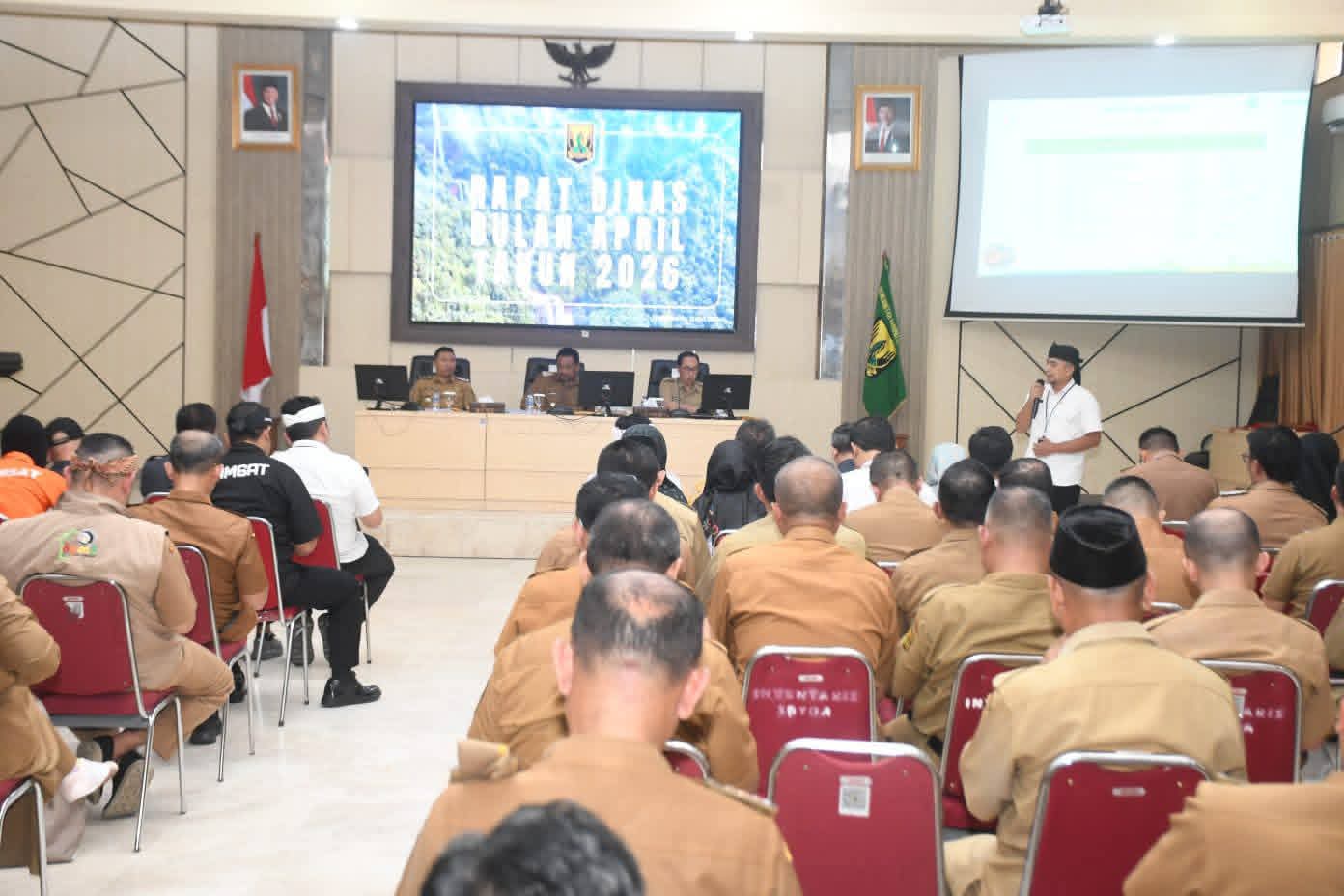 tigasrikandi.com ,- Sukabumi, Bupati Sukabumi H Asep Japar memimpin Rapat Dinas Bulan April 2026 yang digelar di Aula Sekretariat Daerah Kabupaten Sukabumi, Selasa (21/4/2026). Rapat yang dipandu Sekretaris Daerah H Ade Suryaman ini dihadiri Wakil Bupati H Andreas, kepala perangkat daerah, asisten daerah, staf ahli, kepala bagian, hingga para camat se-Kabupaten Sukabumi.